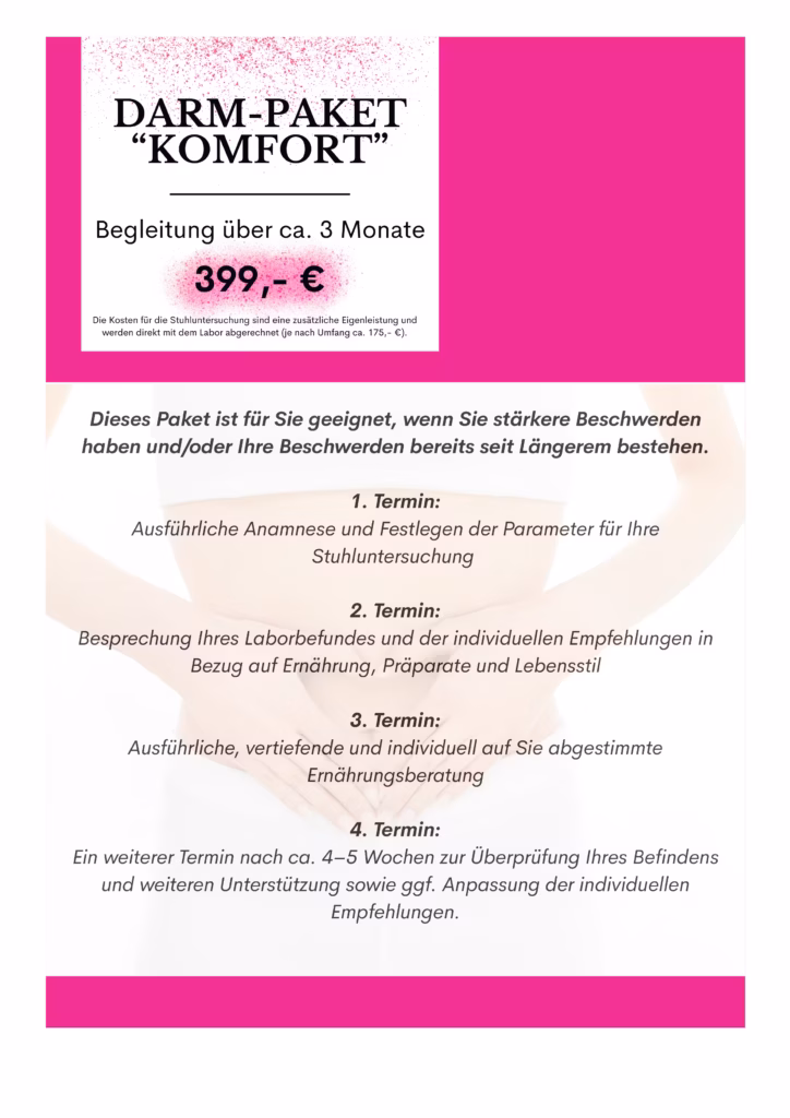 Die Begleitung erfolgt im Rahmen meiner laufenden Ausbildung zur Holistischen Darmtherapeutin (voraussichtlich bis 01.05.2026), auf Grundlage aktueller fachlicher Standards und unter Berücksichtigung meiner umfassenden Vorqualifikation.